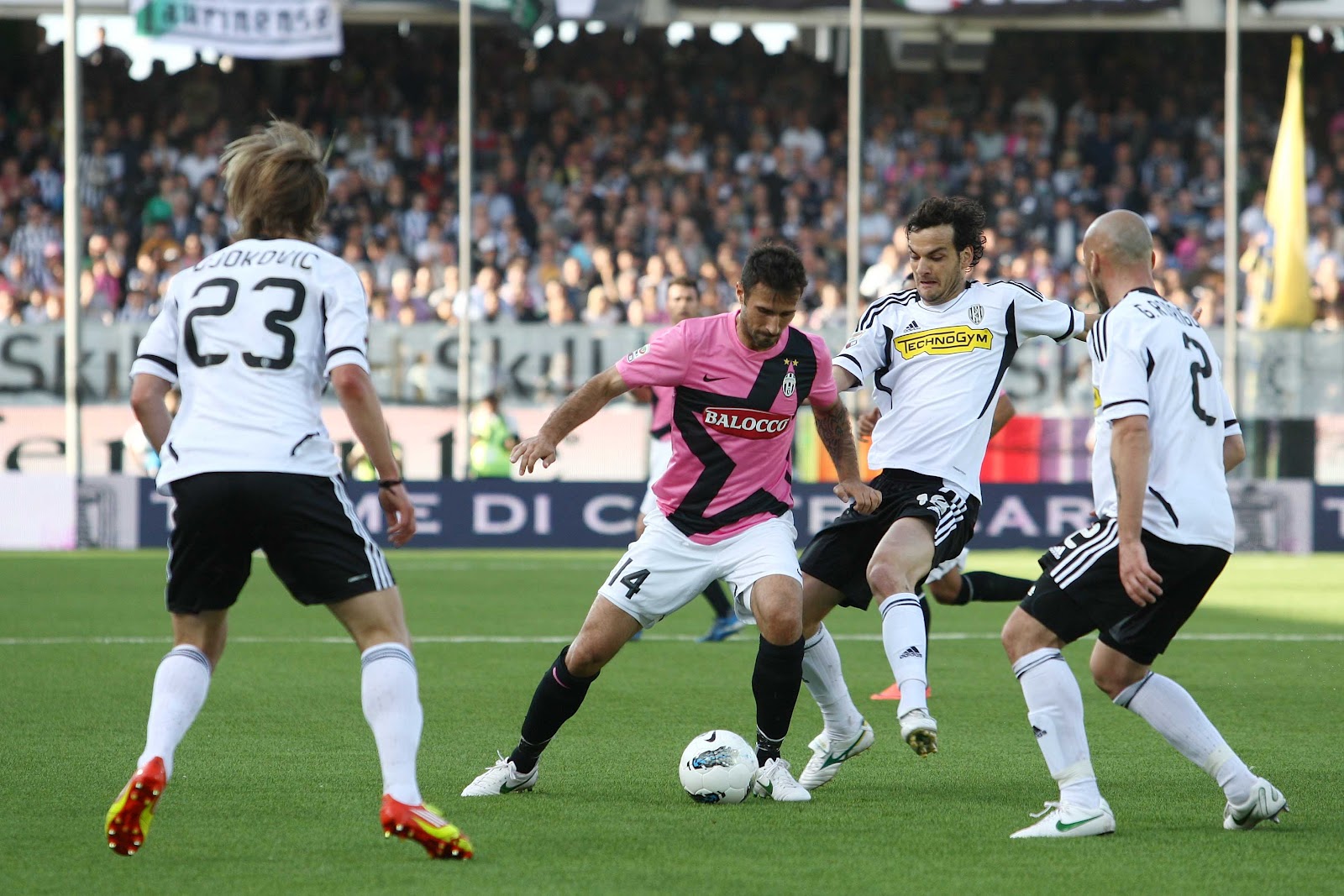 Passano solo cinque minuti e arriva un doppio cambio con Del Piero e Borriello che rilevano De Ceglie e Matri (ammonito, salterà la partita contro il Novara).