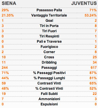 Juventus: Buffon; Barzagli, Marrone, Chiellini; Lichsteiner, Vidal, Pirlo, Marchisio, De Ceglie; Giovinco, Vucinic.