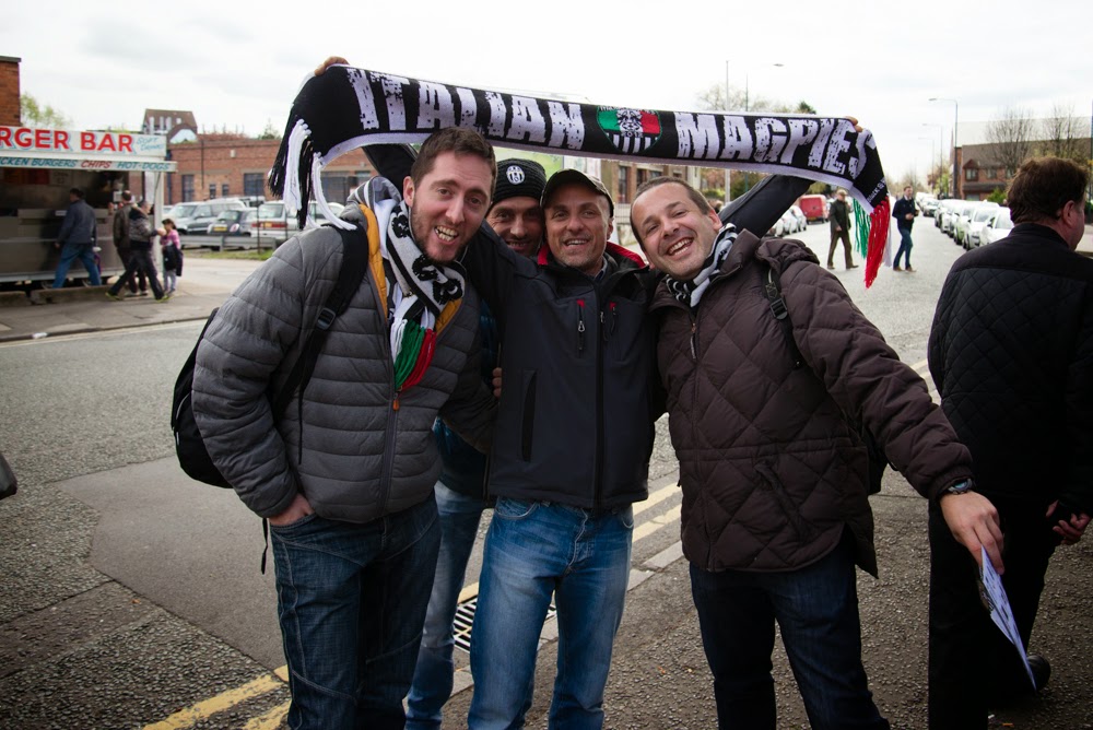 It was another fantastic meeting between the Italian Magpies and the fans of Notts County for the game against Port Vale which Notts won 4 – 2, a great victory from being 0 – 2 down. This was the ninth meeting of Notts County and Juve supporters in either Nottingham or Turin to see our two great teams in Black and White since the friendly game on 8th September 2011. We have met so many times now that we are like family, indeed we have visited family homes in Nottingham and around Italy. It seems now that the game of football that we come to watch has become a small part of the trips because our friendship has grown so strong. At the match many Notts fans come up to the Italian Magpies to thank them for coming to see Notts County. At 2.00pm I took Giorgio and Roberto to Wheelers suite because Giorgio was invited as Colin Slaters (BBC Radio Nottingham) guest and was interviewed in front of a live audience about how the Italian Magpies formed and about the bond between the fans of Juventus and Notts.
